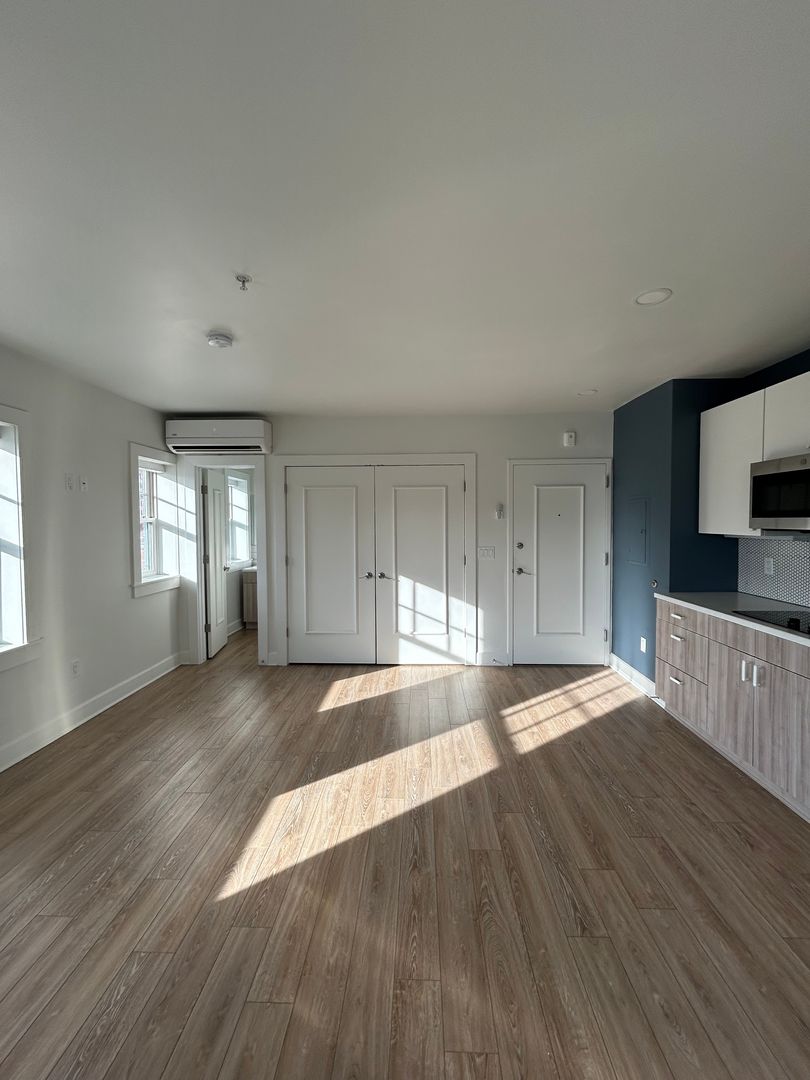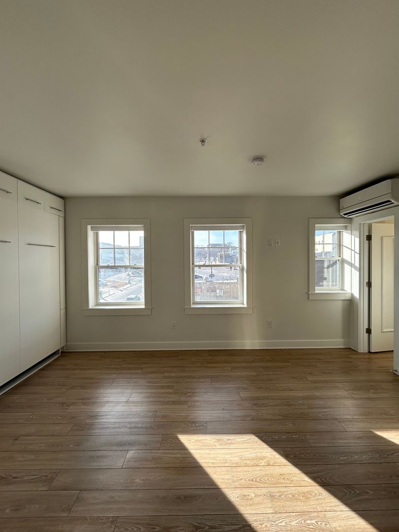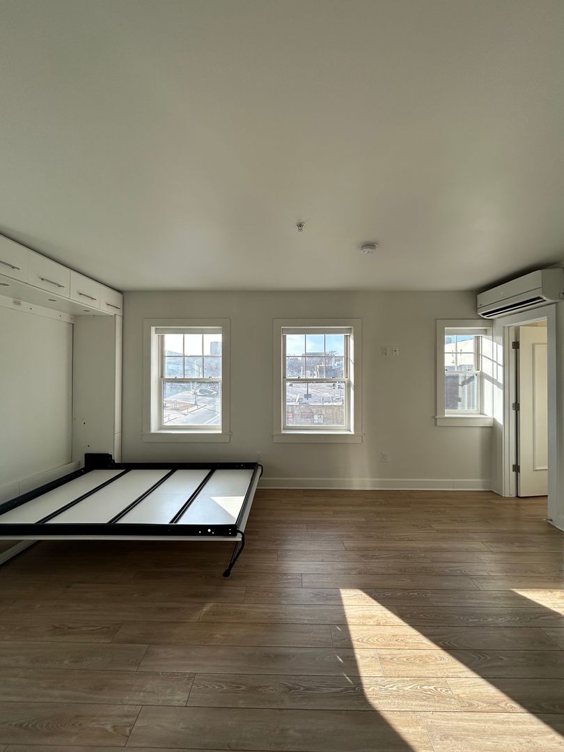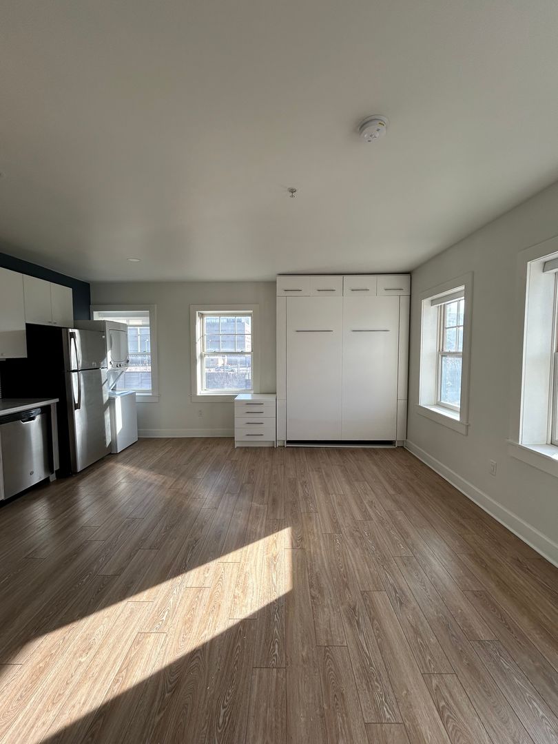 Welcome to this beautifully designed studio apartment that blends modern style with smart functionality. With warm wood style flooring, oversized windows, and a bright open layout, this space feels airy, comfortable, and thoughtfully planned.