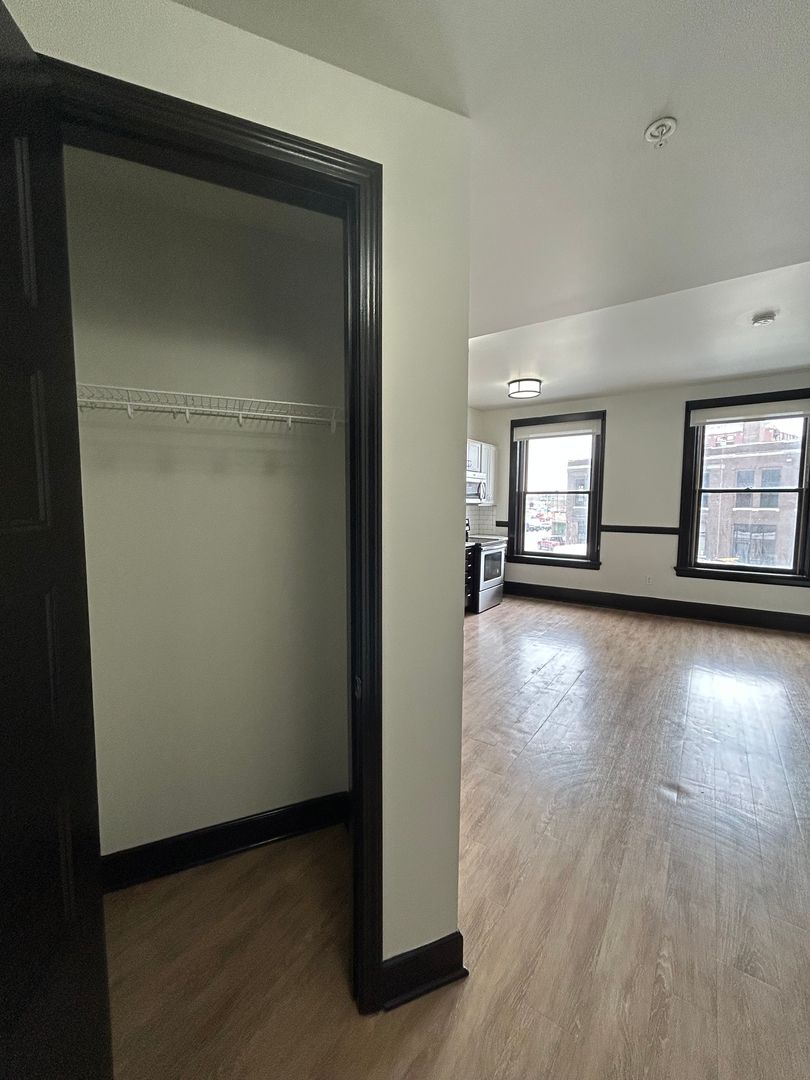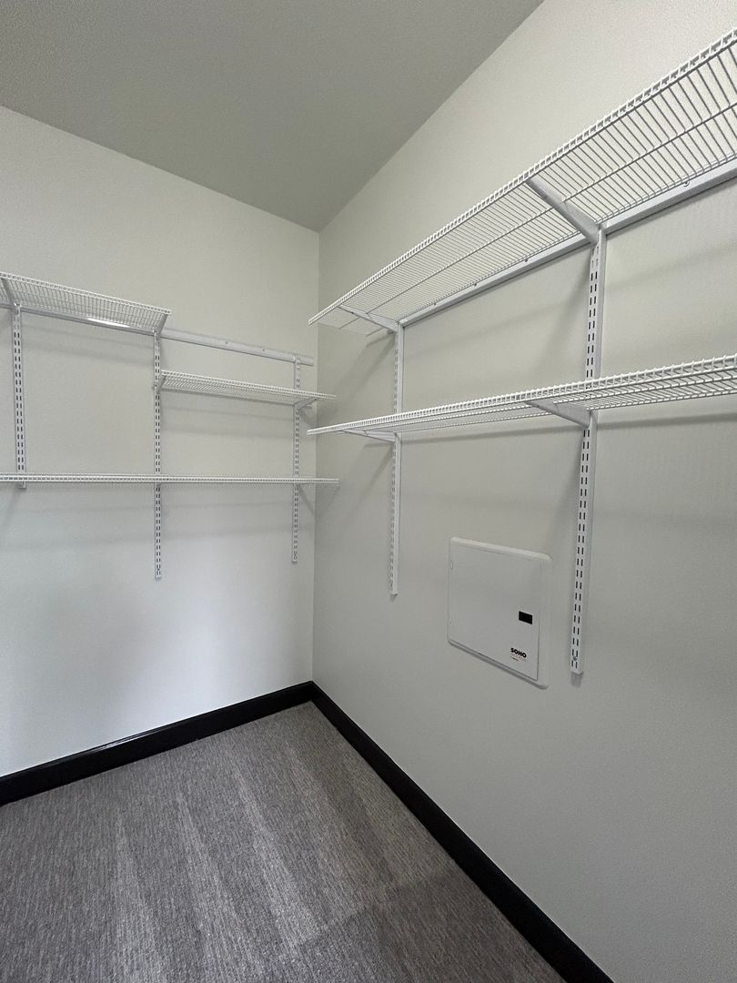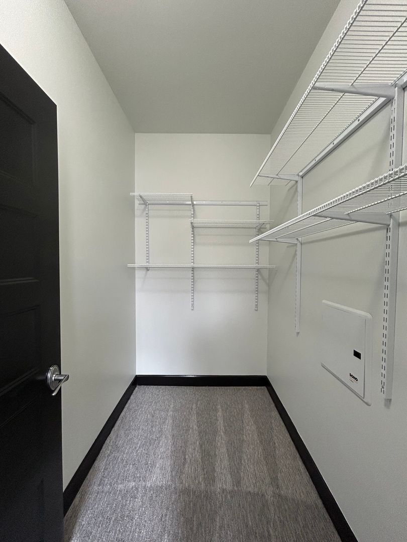 The bedroom offers a quiet retreat with soft carpeting, great natural light, and direct access to a spacious walk in closet with custom shelving giving you all the storage you need without compromise.