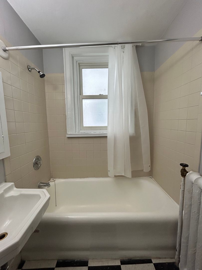 -1 full bathroom featuring a tub/shower combo and vintage tile details