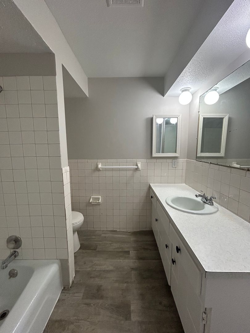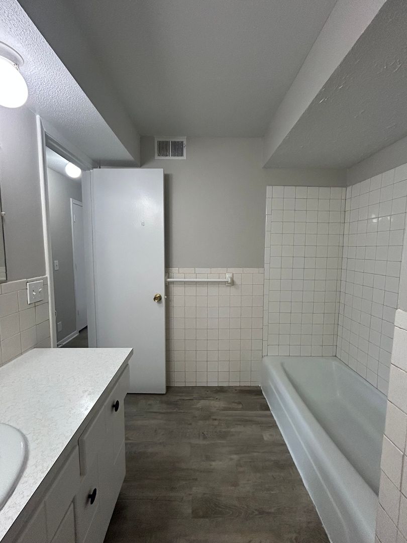 The full bathroom includes a spacious vanity and tub/shower combination, giving you both comfort and practicality. With updated flooring throughout and a clean, modern feel, this apartment is move-in ready.