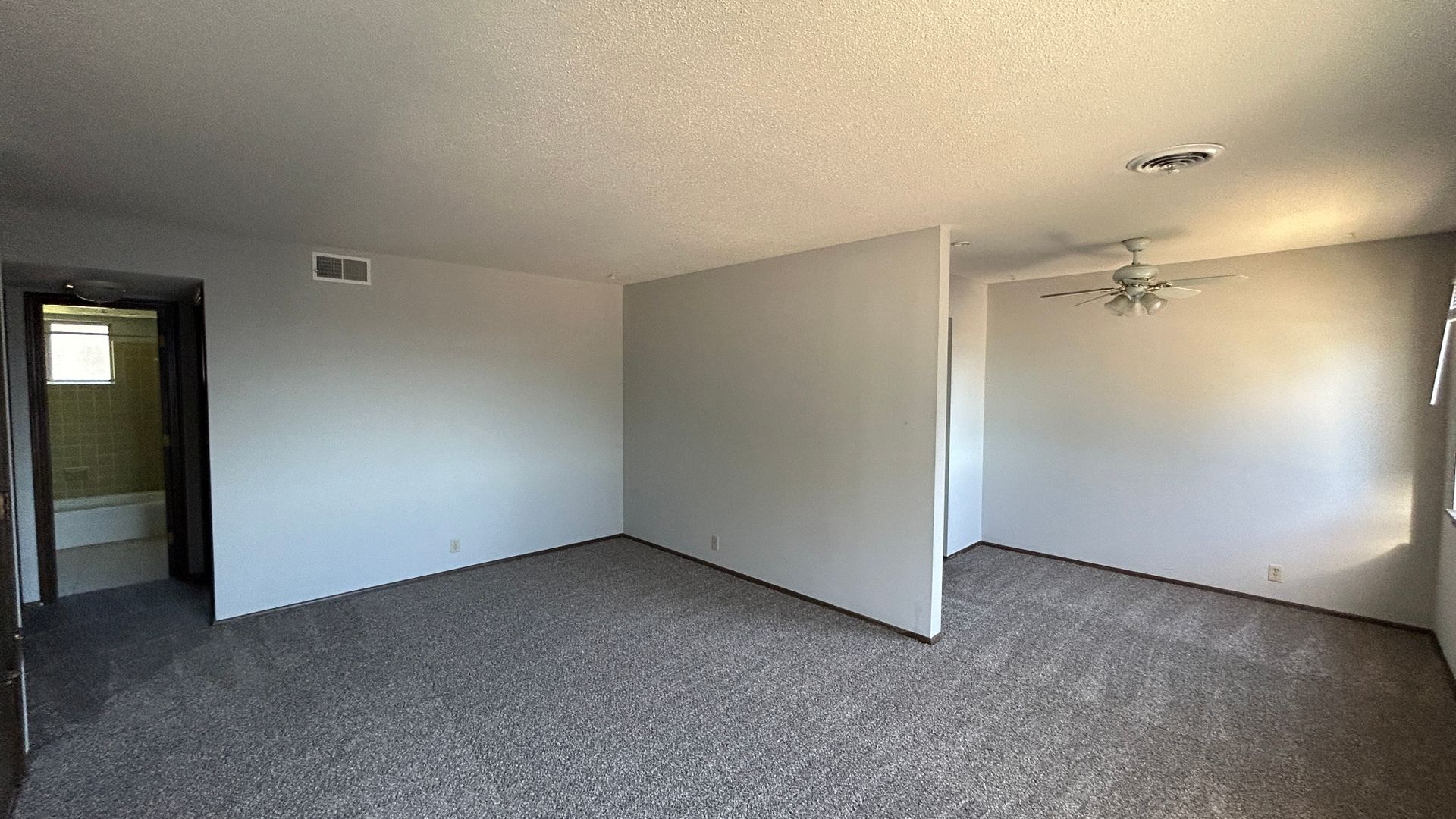 The large living area is filled with natural light and gives you flexibility for both relaxing and entertaining. The bedroom is impressively sized with ample closet space and soft carpeting, creating a cozy retreat at the end of the day. The full bathroom features classic tile and a tub/shower combo with great natural light from the window.