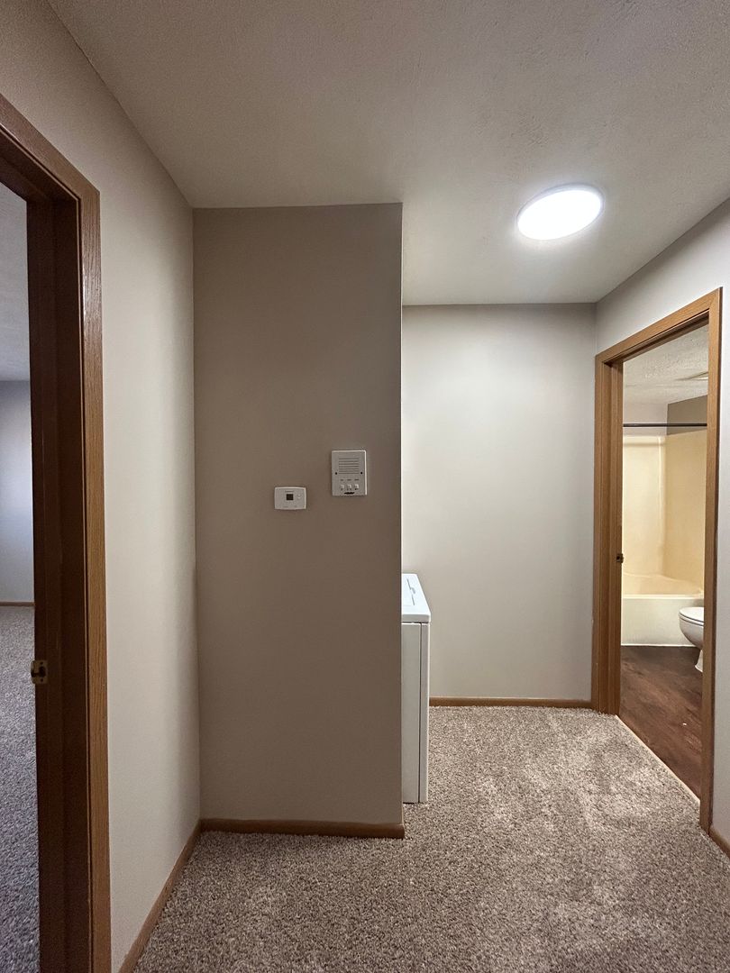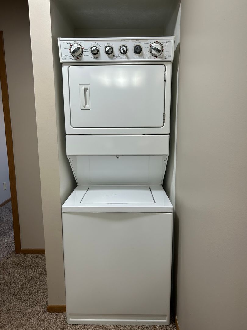The spacious bedroom provides plenty of room for your furniture and includes a generous walk in closet with built in shelving and hanging space. You’ll also appreciate the in unit stackable washer and dryer, conveniently tucked away for easy access.