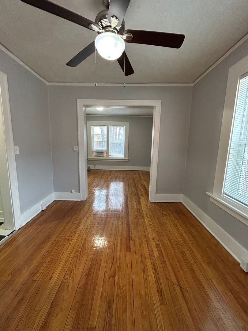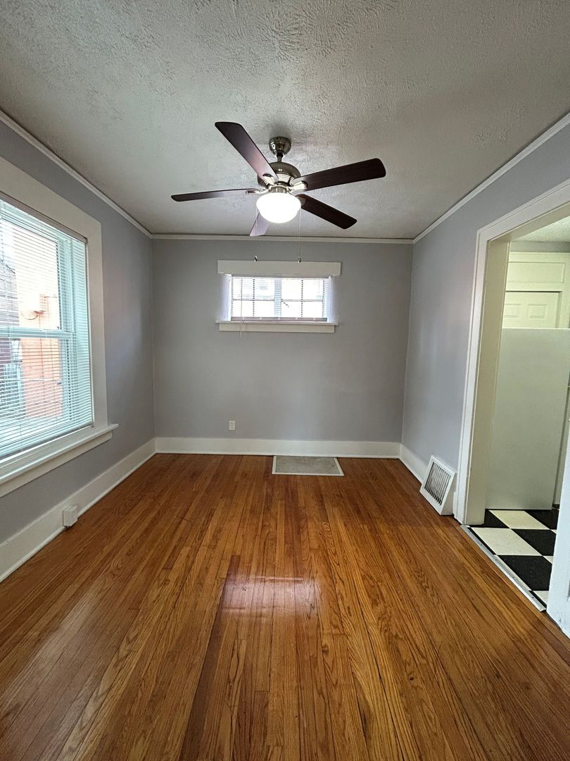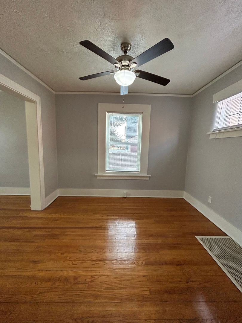 Both bedrooms are spacious and bright with hardwood floors, ceiling fans, and ample closet space, offering comfortable retreats with plenty of room for furniture and personal style.