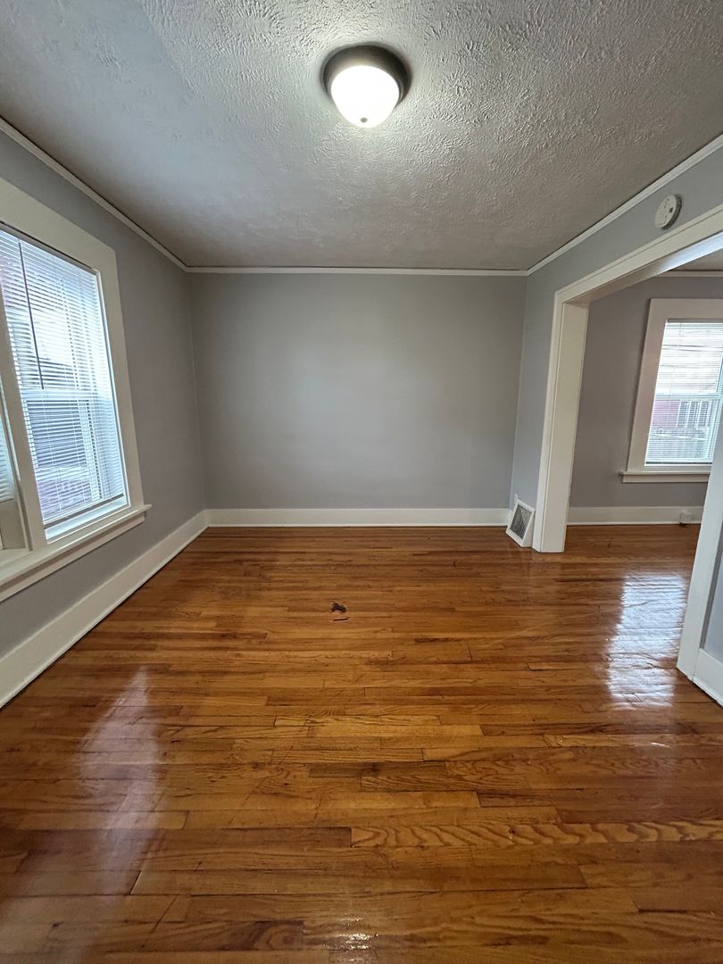 As you step inside, you are welcomed by gorgeous hardwood flooring and large windows that fill the space with natural light, creating a warm and inviting atmosphere throughout the living area. The open layout between the living room and dining space provides plenty of room for relaxing, entertaining, or creating a comfortable work-from-home setup.