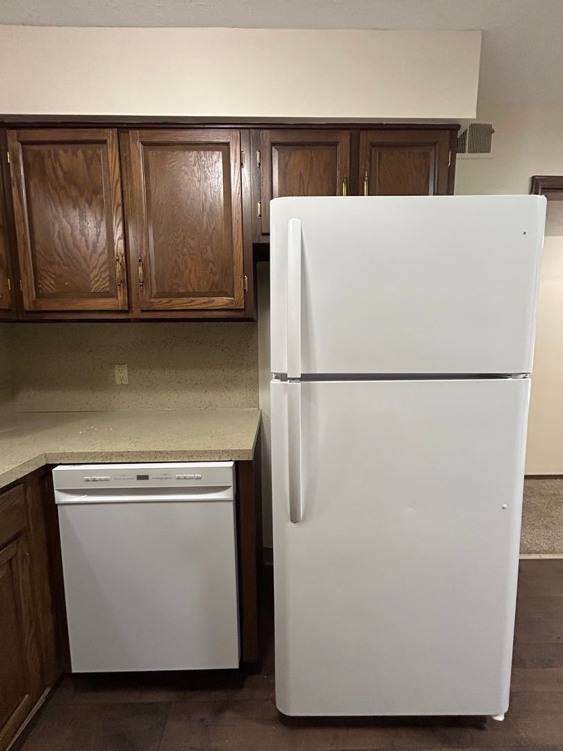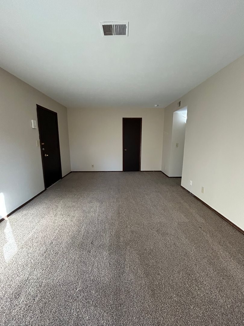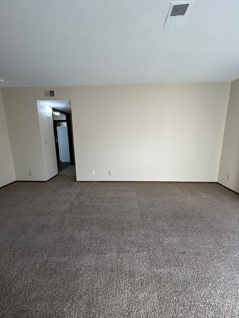 Step into a large living area featuring plush carpeting and direct access to a private patio through sliding glass doors perfect for enjoying your morning coffee or relaxing at the end of the day. The separate dining area flows seamlessly into the kitchen, which is equipped with ample cabinet space and a clean, classic design that makes everyday living easy.