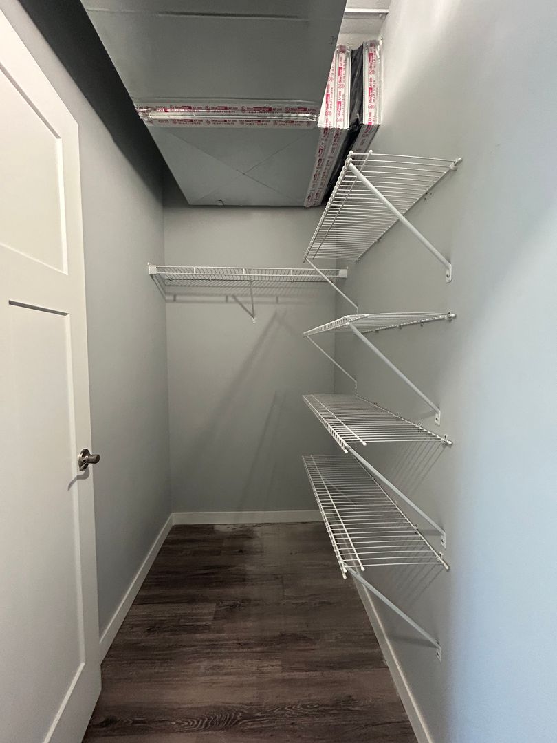 A conveniently located pantry offers additional storage, making it easy to keep the kitchen organized and clutter free.