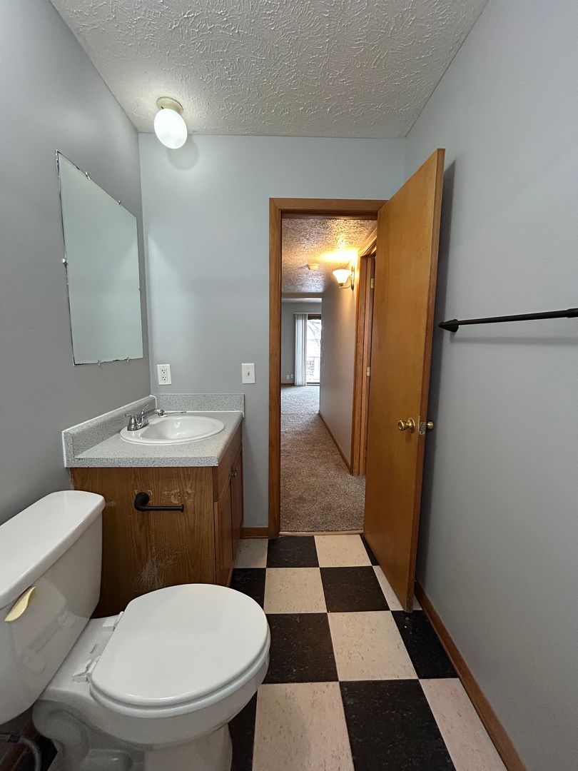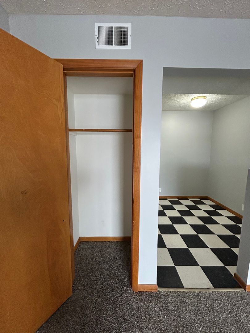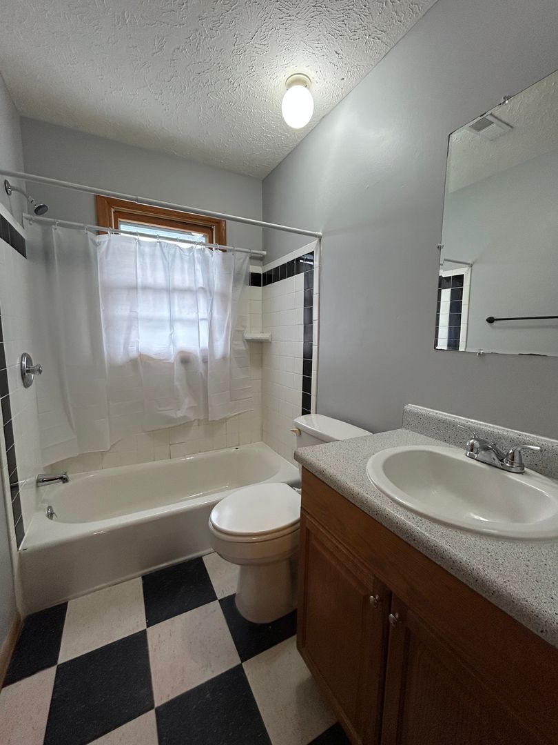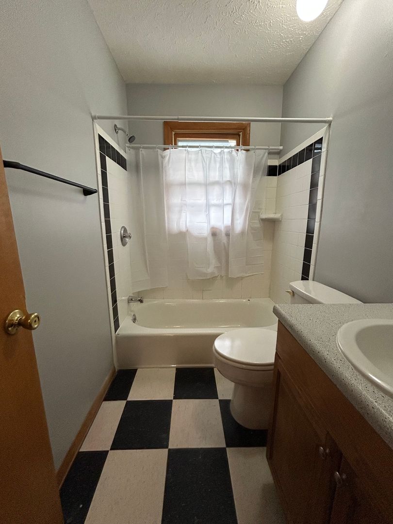 The bedroom is generously sized with soft carpeting, great natural light, and ample closet space, providing a comfortable and cozy retreat. The bathroom offers a clean and functional layout with a full tub/shower combo and additional storage.