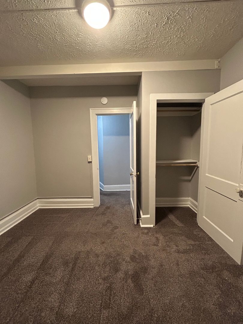 -Spacious bedroom with plush carpeting and closet space