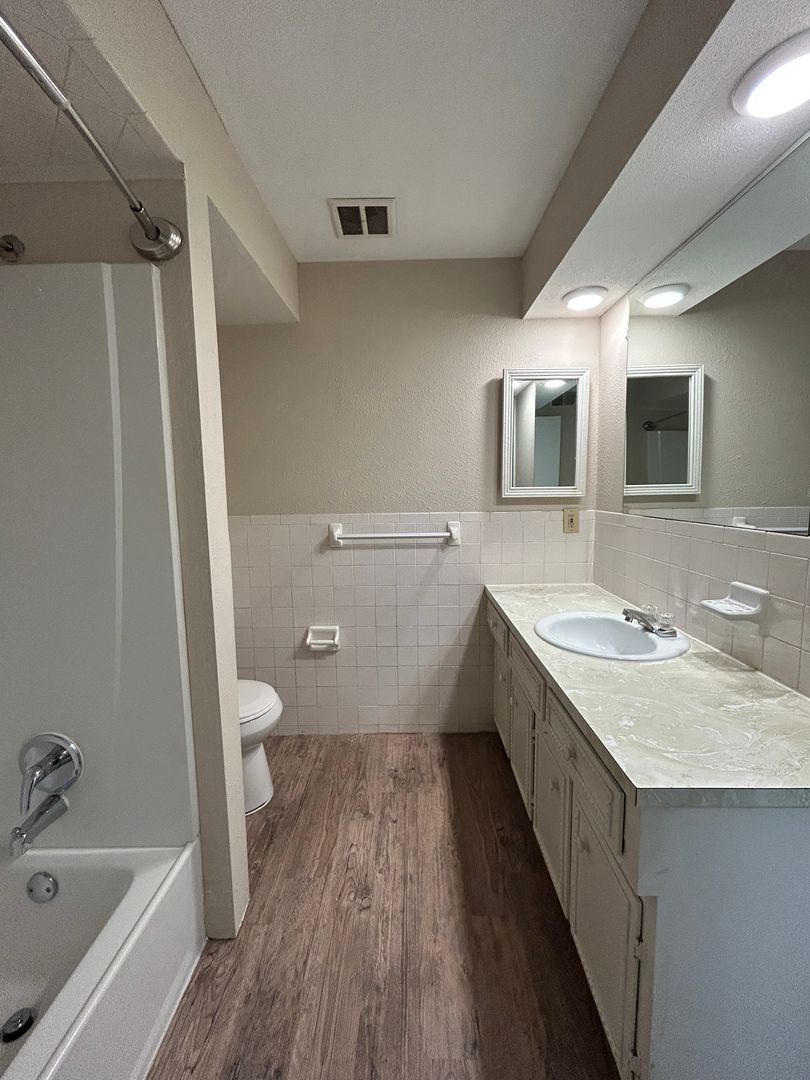 Both bedrooms are generously sized with great natural light and large closets, including a spacious walk in closet that provides excellent storage. The bathroom features a large vanity, plenty of counter space, and a full tub/shower combo, designed for both comfort and convenience.