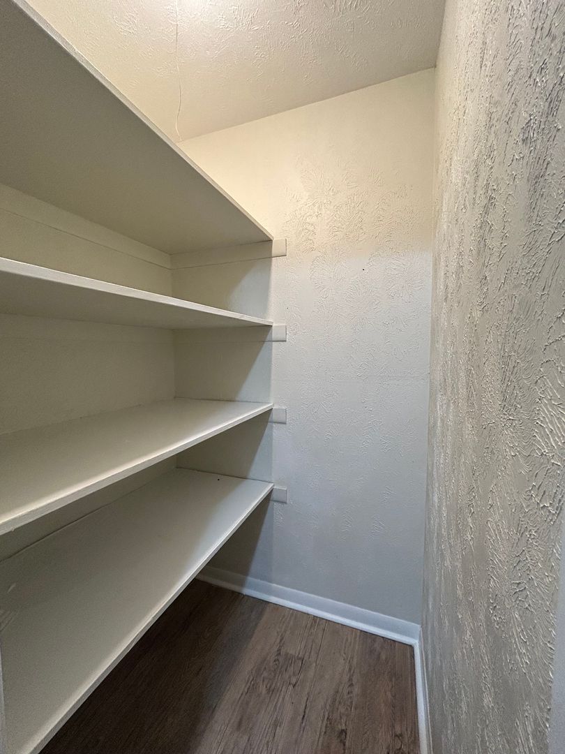The kitchen offers abundant cabinet space, modern countertops, and full-size appliances, making meal prep easy and efficient. Just beyond the kitchen, you’ll find a pantry that provides additional storage space to keep everything organized.