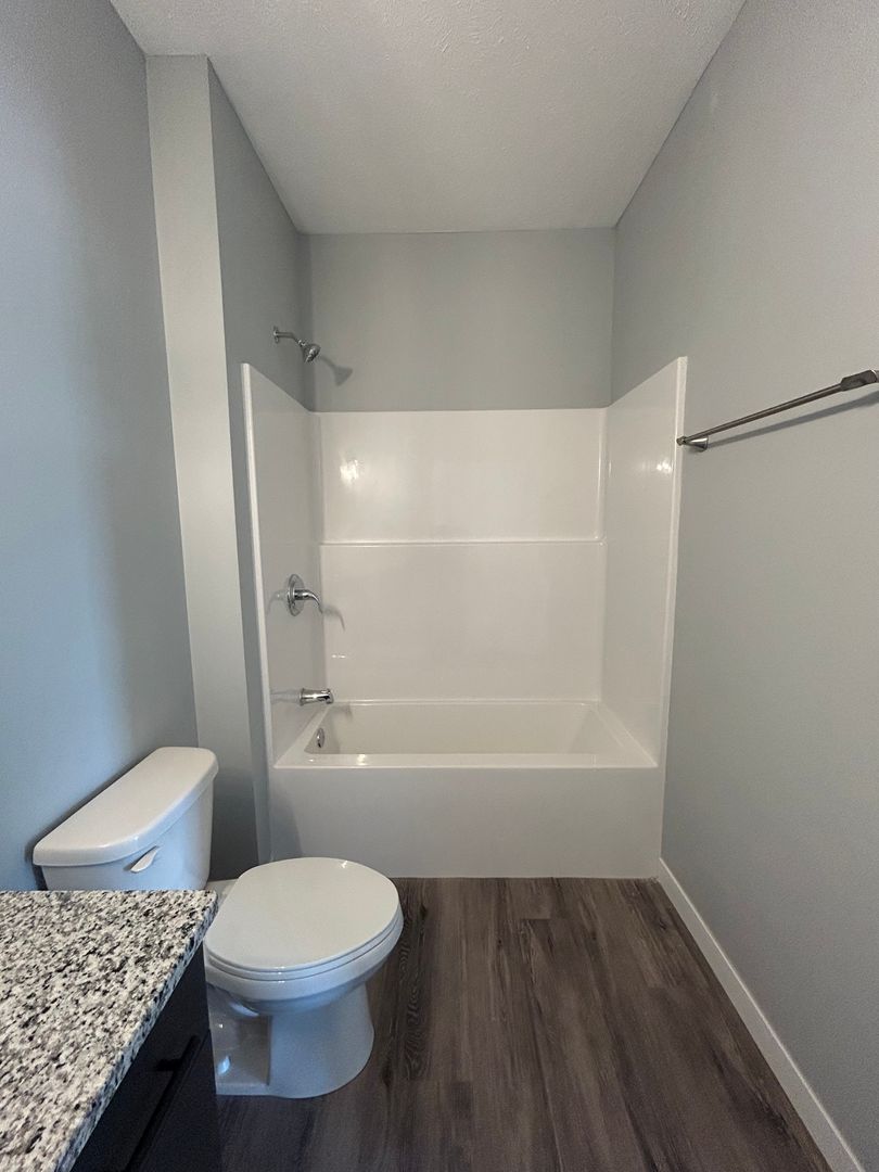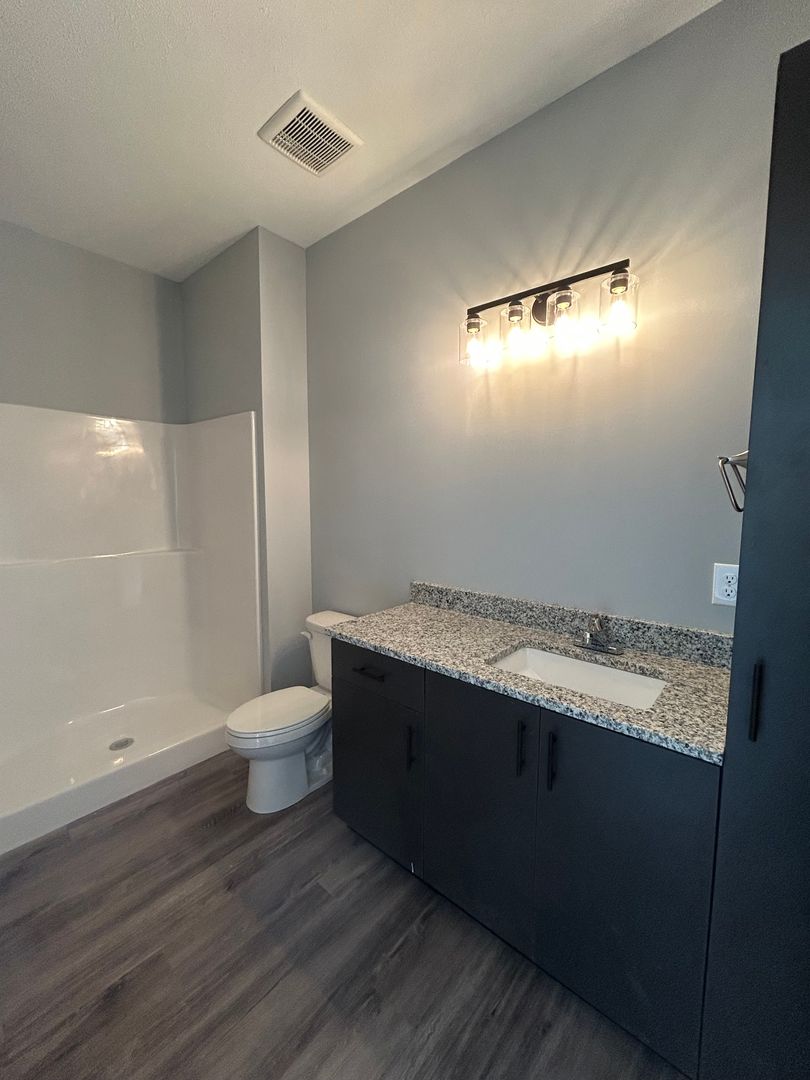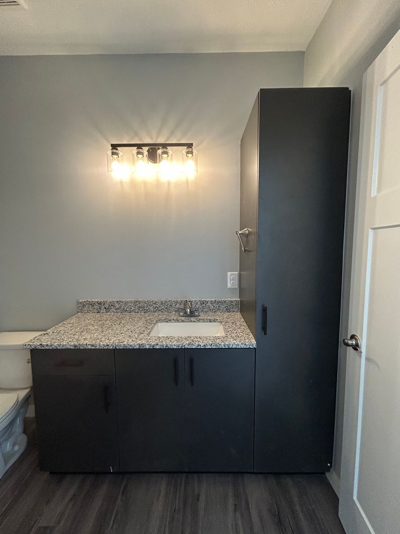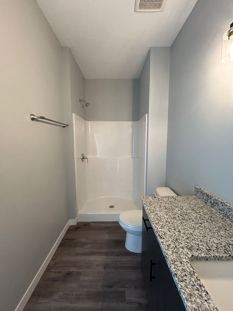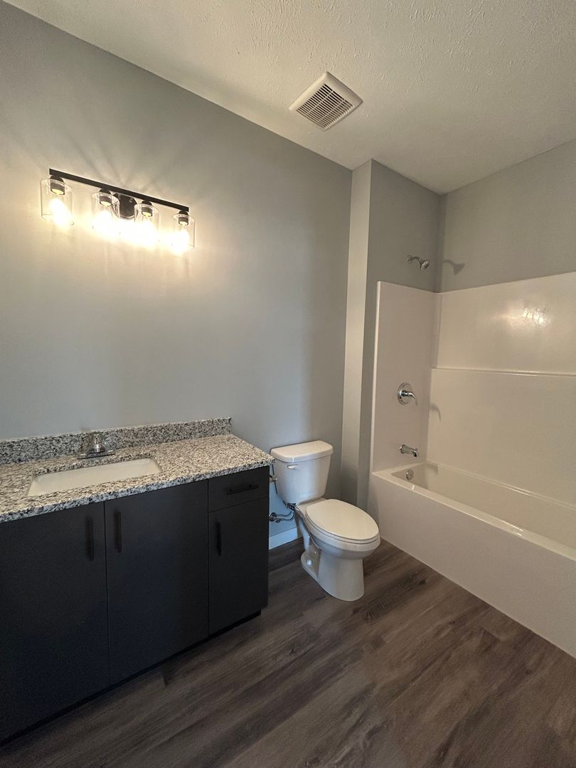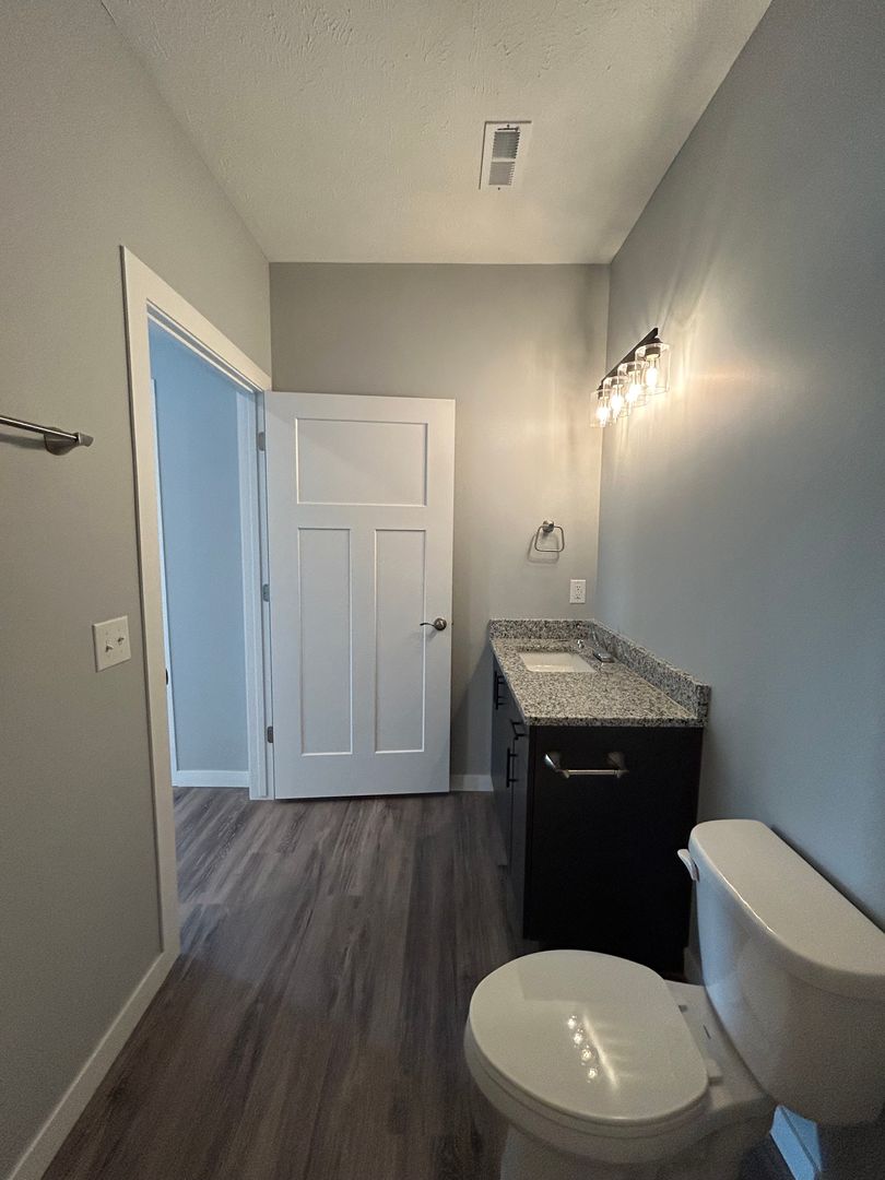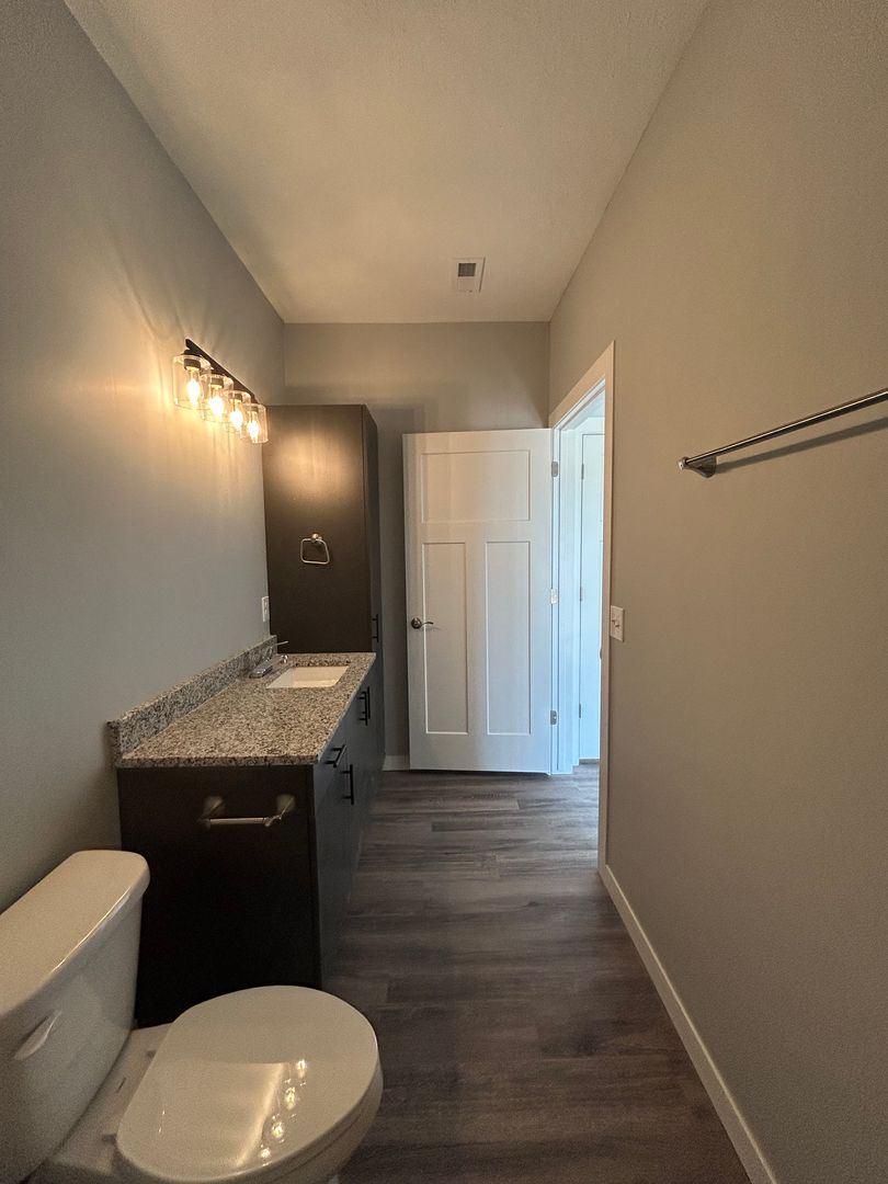 Both bathrooms feature modern vanities with granite countertops, updated lighting, and clean contemporary finishes. The spacious layouts make daily routines comfortable and convenient, with a full bathtub and shower combination.