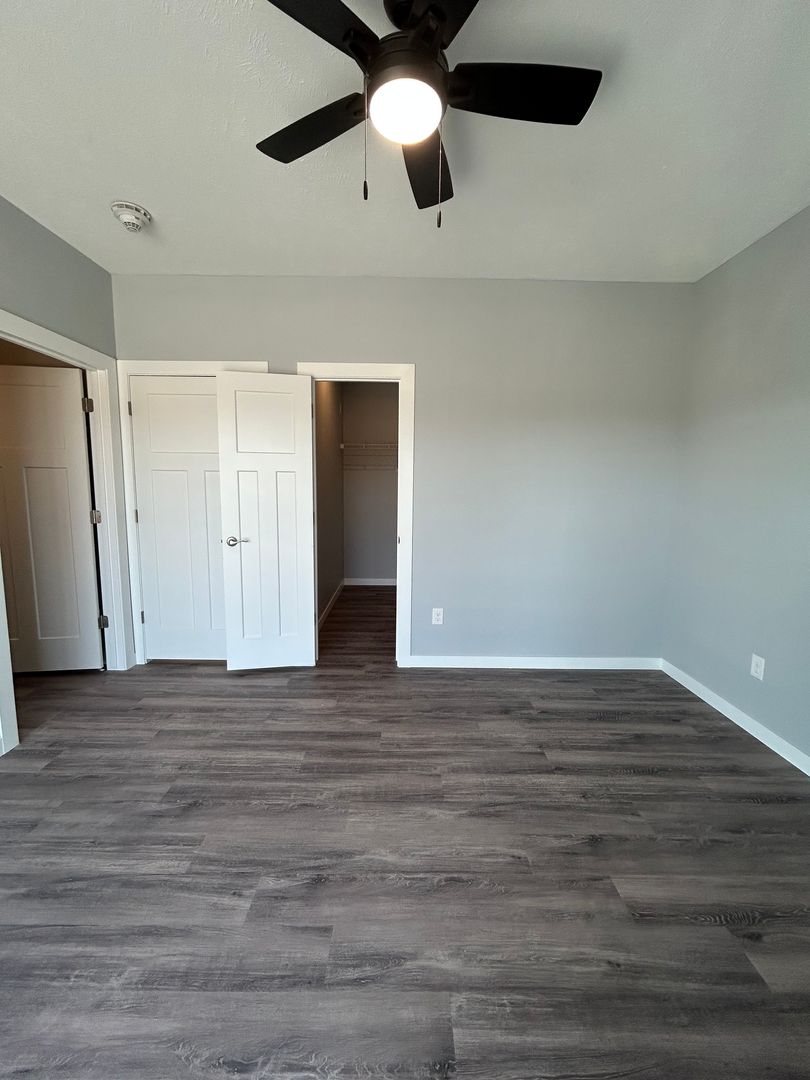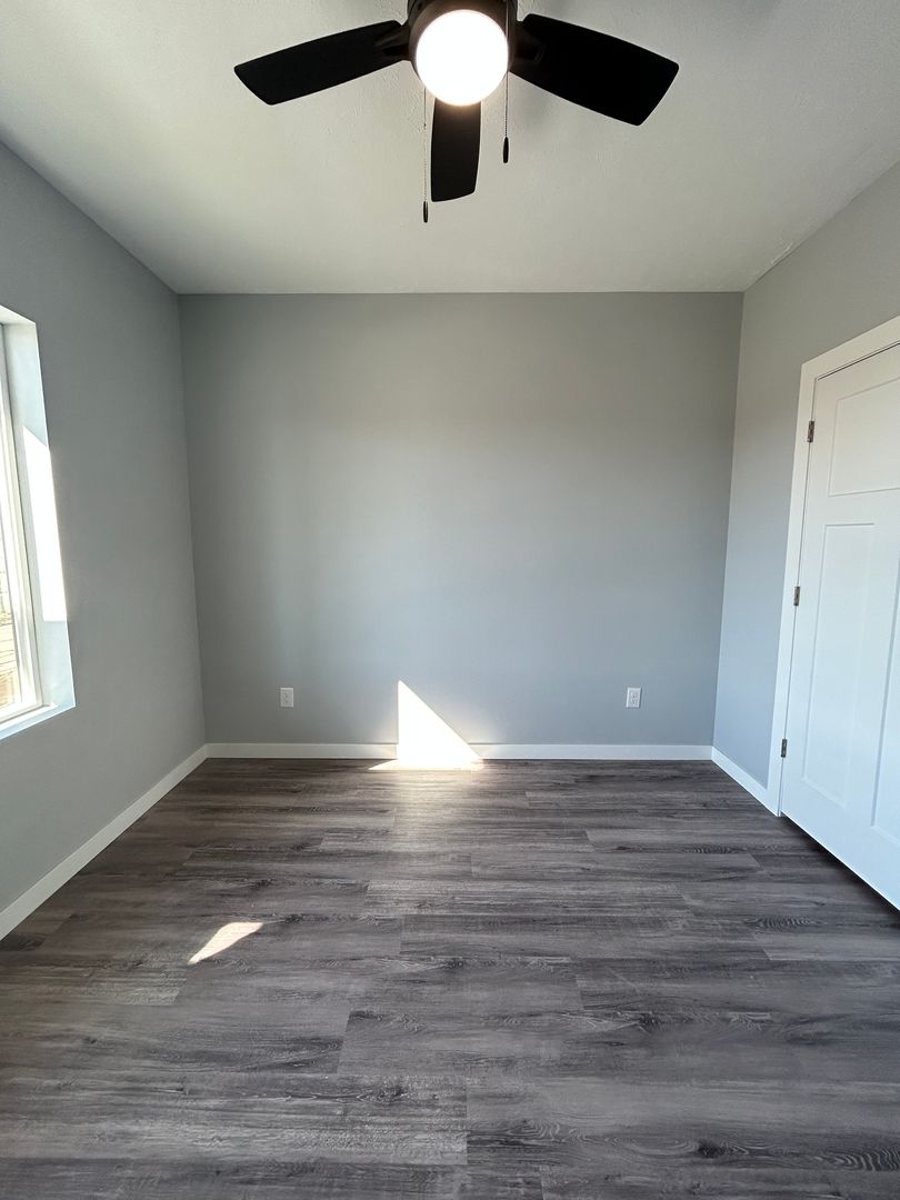 The second bedroom is perfect for guests, a home office, or additional living space while still offering great natural light and closet space.