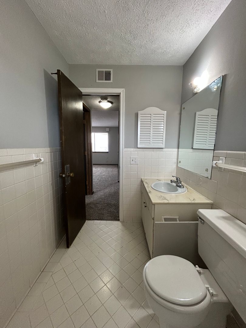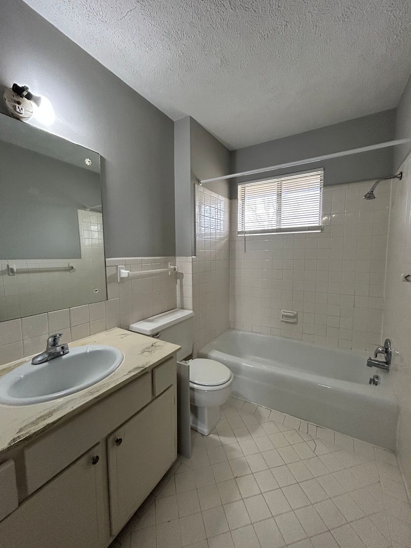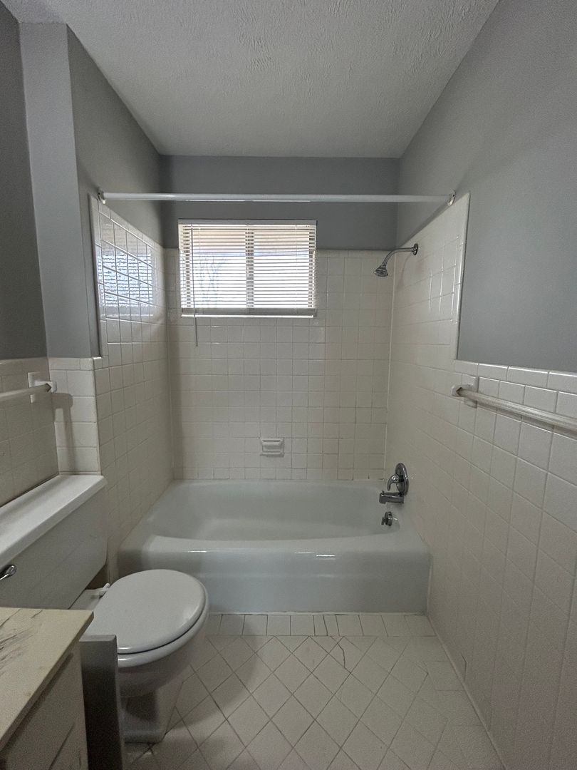 The bathroom includes a full tub and a clean, straightforward layout with plenty of space to get ready for your day.
