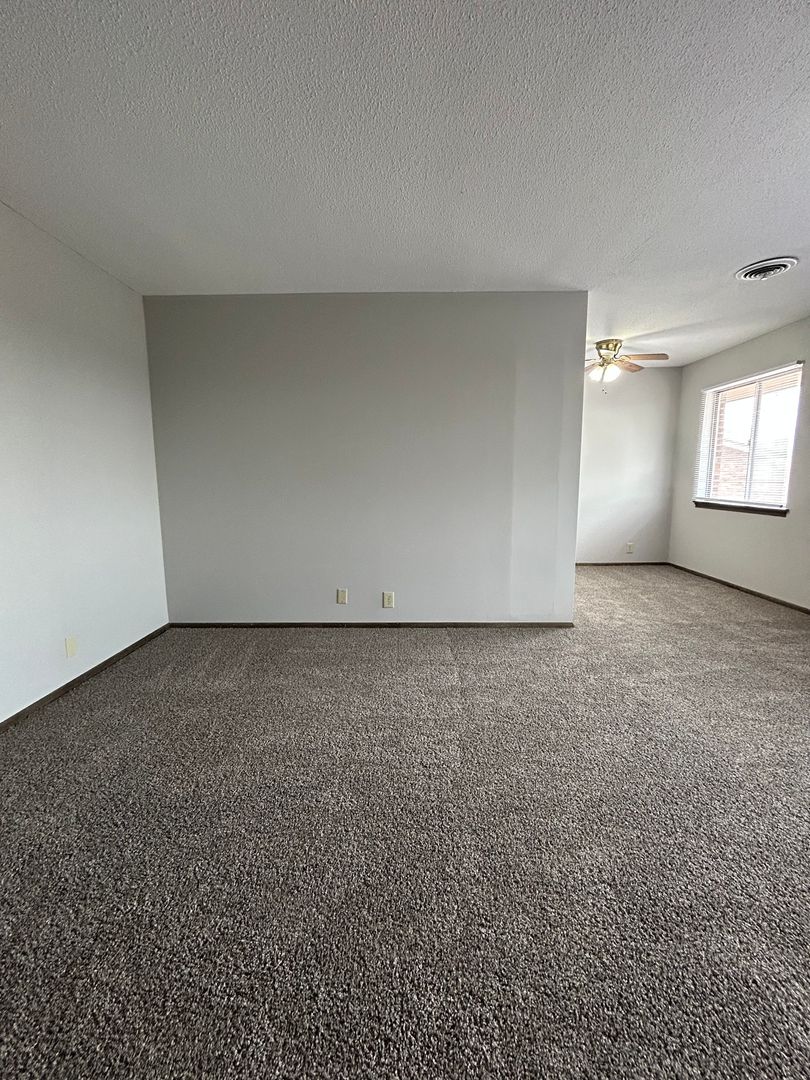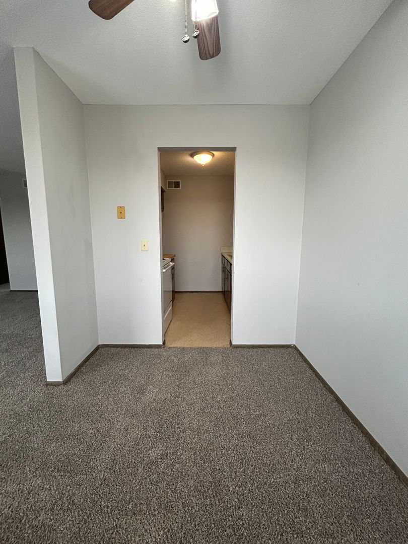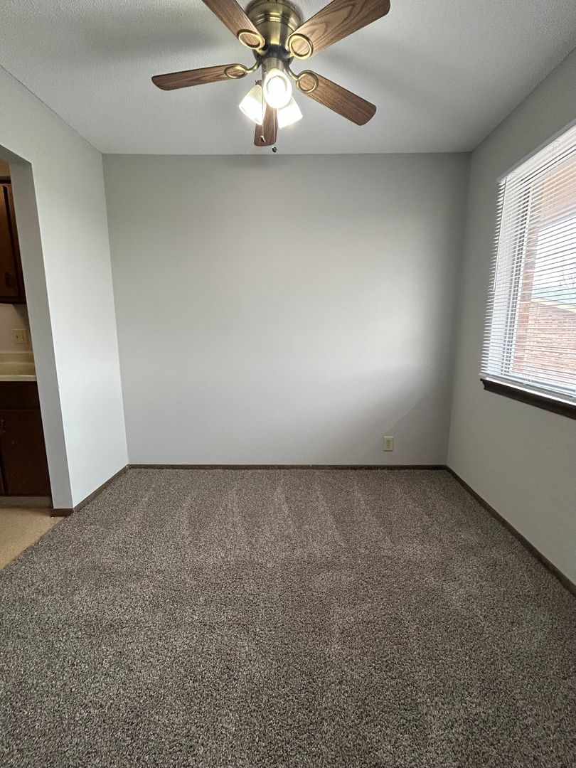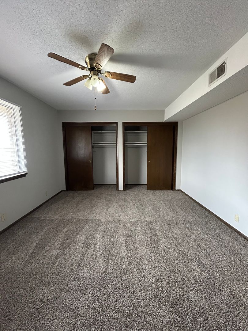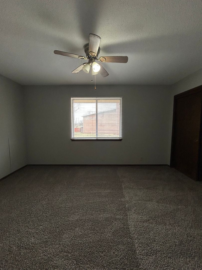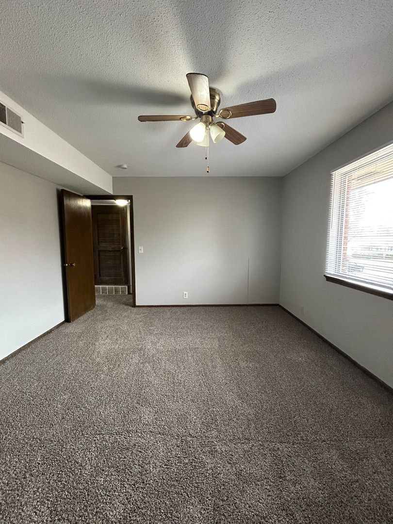 The bedroom is spacious and features generous closet space, giving you plenty of room for storage and comfort. A ceiling fan adds an extra touch of convenience, and the room easily accommodates a variety of furniture setups.